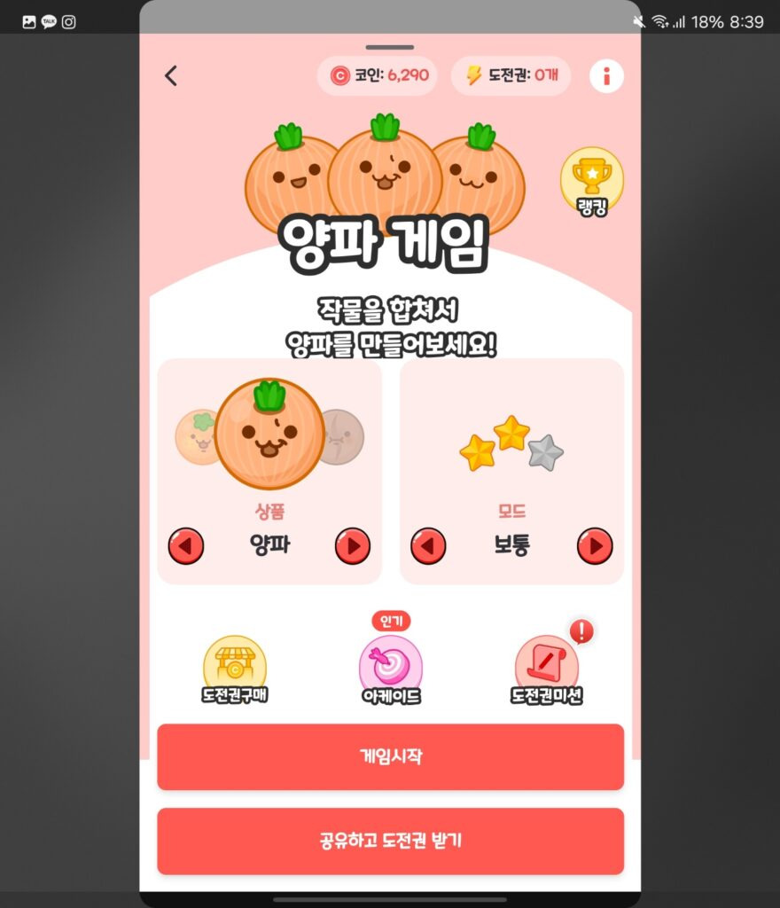 2. 양파게임 도전권 얻기